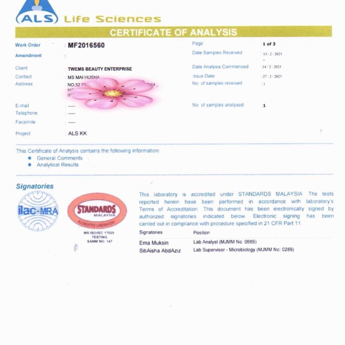 Aqua, Kojic Acid, Niacinamide, Tocopherol, Allantoin, Phenoxyethanol, Barium, Calcium, Silicon, Titanium Oxide, Black Currant Seed Oil, Olive Oil, Aminopropanediol Esters, Glycerin, Coconut Oil, Shea Butter Extract, Sunflower Seed Oil Esters. Ingredients to avoid – Vitamin C, Alpha Hydroxy Acid (AHA) and Beta Hydroxy Acid (BHA)